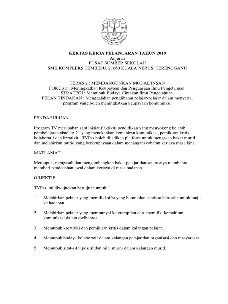 Kertas Kerja Pelancaran Tvpss Pdf